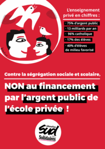 SUD Education 49 propose donc d'aider l'enseignement catholique à s'affranchir des règles qui semblent le brider. Nous revendiquons la nationalisation de l’enseignement privé, sans indemnité ni rachat, et le transfert de ses personnels dans les corps correspondants de l’enseignement public.