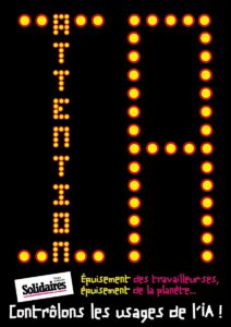 Impact sur nos emplois, nos conditions de travail, nos données et sur l’environnement… Solidaires soutient une position technocritique : ni technophobe par principe, ni techno-solutionniste. Autrement dit : nous considérons qu’aucune technique ne peut constituer une réponse miracle aux crises sociales et environnementales engendrées par le capitalisme. A fortiori une technologie aussi vorace en eau, en énergie et en métaux rares que l’IA et qui aggrave les inégalités sociales et les oppressions systémiques.