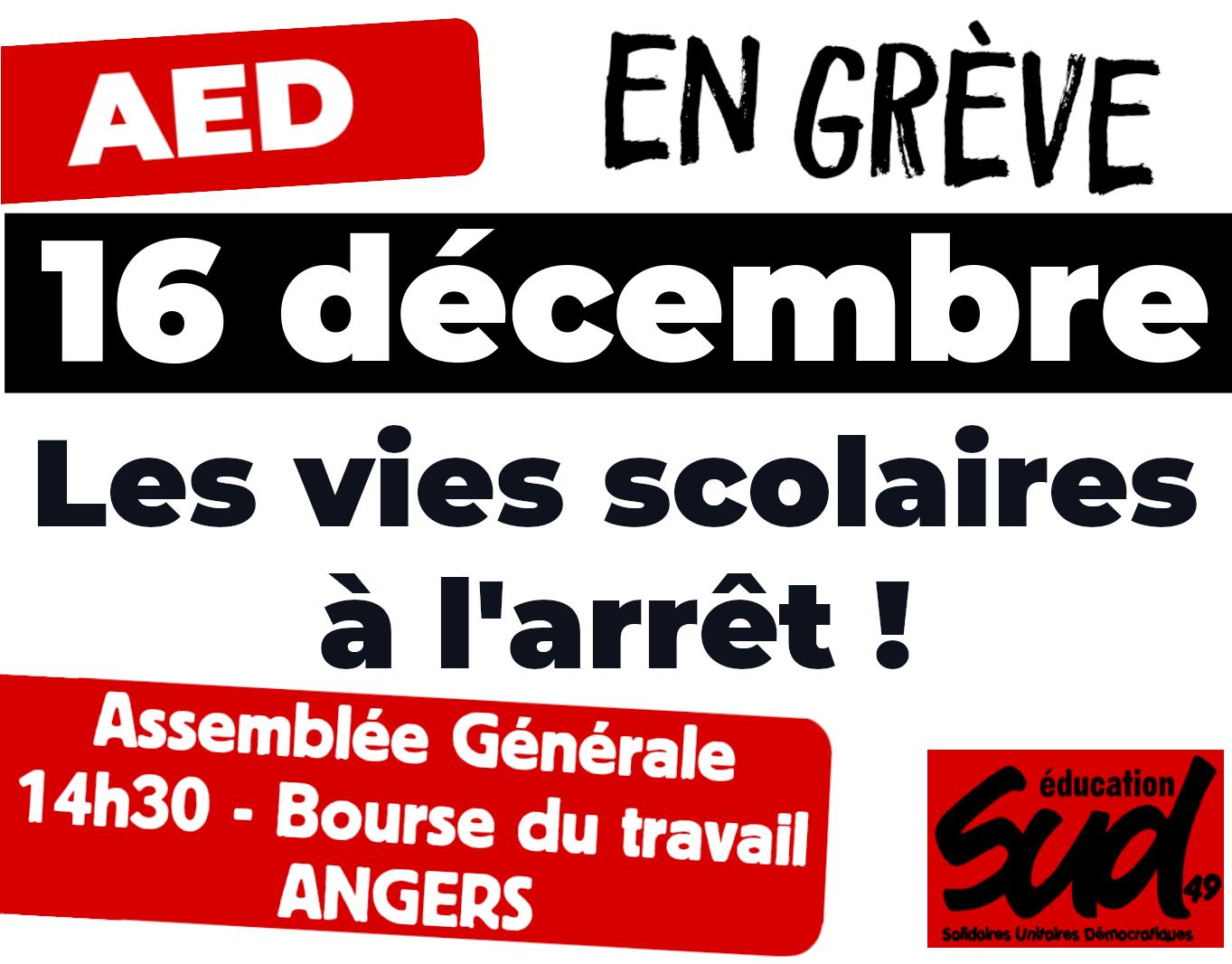 SUD éducation appelle l’ensemble des personnels à se mettre en grève le 16 décembre pour obtenir un vrai statut et de meilleures conditions de travail pour les AED !