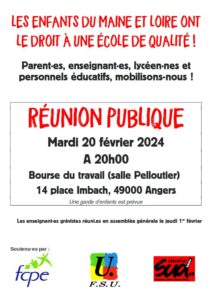 Soutenu·es par : FCPE49, FSU49, Sud Education 49